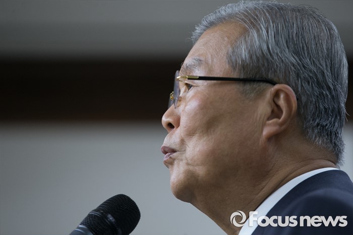 (서울=포커스뉴스) 14일 오전 서울 여의도 국회도서관에서 열린 민주적 여론형성을 위한 법제도 개선사항 정책토론회에 참석한 김종인 더불어민주당 비대위 대표가 축사를 하고 있다.