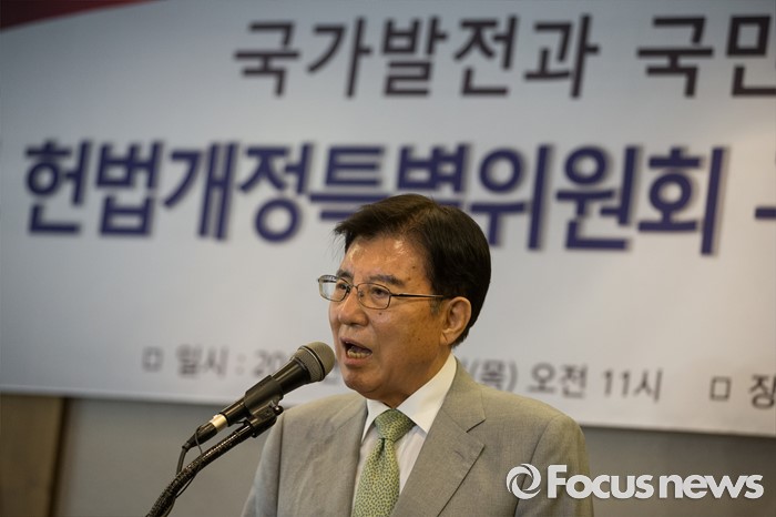 (서울=포커스뉴스) 김덕룡 전 한나라당 원내대표가 16일 오전 서울 중구 프레스센터에서 열린 국회 헌법개정특위 구성 촉구 성명 기자회견에서 발언하고 있다.