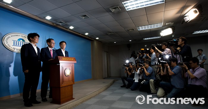 (서울=포커스뉴스) 14일 오후 서울 여의도 국회에서 여야3당 원내수석부대표 합의사항을 발표하고 있다. 이날 여야3당은 사드(고고도미사일방어체계) 국내 배치 결정에 따른 논한과 관련해 다음주 긴급 현안 질의를 위한 국회 본회의를 개최하는데 합의 했다고 밝혔다.