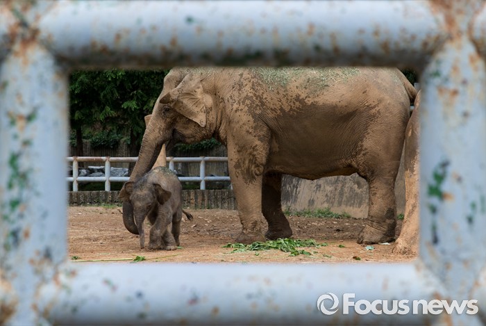 (과천=포커스뉴스) 14일 오후 경기도 과천 서울대공원에서 지난달 24일에 태어난 새끼 아시아 코끼리(암컷)가 가자바(어미)와 함께 야외 방사장을 뛰놀고 있다. 이 아기코끼리는 '멸종위기에 처한 야생 동식물의 국제 거래에 관한 협약(CITES)' 1급 보호종으로 지정된 아시아코끼리다.