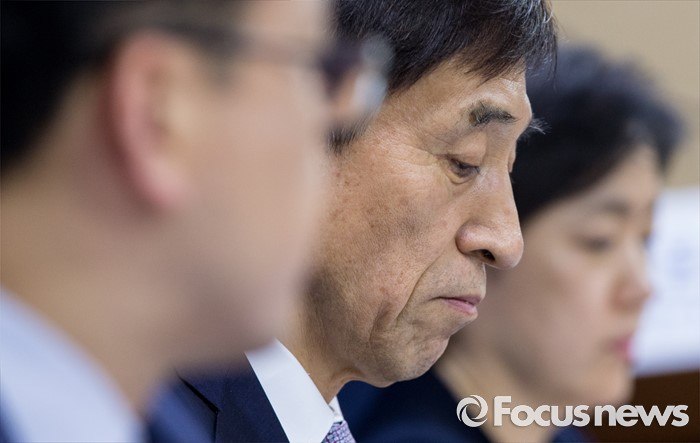 (서울=포커스뉴스) 이주열 한국은행 총재가 14일 오후 서울 중구 한국은행에서 최근의 물가안정목표제 운영상황에 대해 설명 도중 생각에 잠겨 있다.