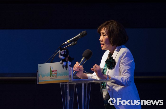(서울=포커스뉴스) 14일 오후 서울 강남구 코엑스에서 열린 캐릭터라이선싱페어 2016 에서 헬로키티 창작자 시즈미 유꼬가 '캐릭터 창조 비법' 이라는 주제로 특강을 하고 있다.