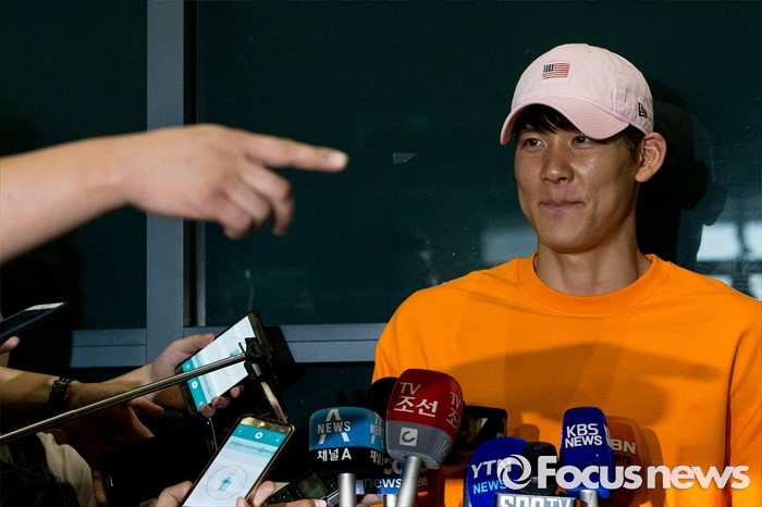 (인천공항=포커스뉴스) 리우 올림픽 출전이 확정된 '마린보이' 박태환이 호주 전지훈련을 마치고 14일 오후 인천국제공항을 통해 입국해 기자회견을 하고 있다.
