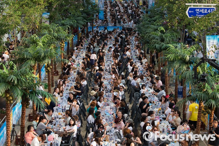 (서울=포커스뉴스) 14일 오후 서울 서대문구 신촌 연세로 일대에서 열린 '제2회 신촌맥주축제'에 찾은 시민들이 축제를 즐기고 있다.