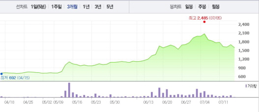 앞서 키스톤글로벌은 6월10일부터 17일까지 6거래일 연속 상승세를 나타내는 등 꾸준히 상승 곡선을 그려왔다.
