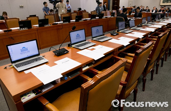 (서울=포커스뉴스) 15일 오전 서울 여의도 국회에서 예정된 운영위원회 전체회의에 새누리당 의원들이 불참해 빈 자리가 보이고 있다. 이날 새누리당은 더불어민주당 소속 홍영표 국회 환경노동위원장이 야당 단독으로 예비비 지출안 등을 처리한 것과 관련해 홍 위원장의 사퇴를 요구하며 모든 상임위 보이콧을 선언했다.