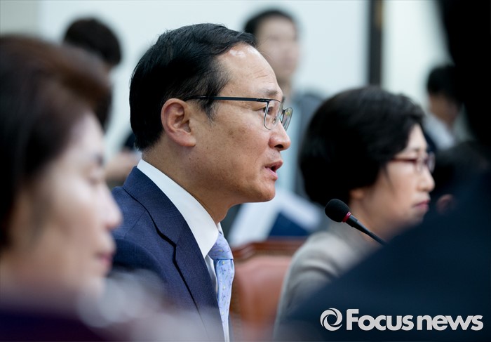 (서울=포커스뉴스) 15일 오전 서울 여의도 국회에서 홍영표 국회 환경노동위원장이 결산 표결 관련 입장을 전하는 기자간담회를 하고 있다. 이날 새누리당은 더불어민주당 소속 홍 위원장이 야당 단독으로 예비비 지출안 등을 처리한 것과 관련해 위원장 사퇴를 요구하며 모든 상임위 보이콧을 선언했다.
