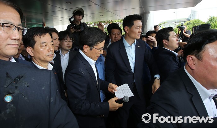 (성주=포커스뉴스) 황교안 국무총리가 15일 오전 경북 성주군청광장에서 사드(THAAD, 고고도미사일방어체계) 배치에 대한 주민설명회에서 주민들에게 설명을 하고 있다.