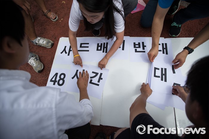 (서울=포커스뉴스) 좋은 대한민국 만들기 대학생 운동본부' 소속 학생들이 15일 오전 서울 용산 미군 기지 앞에서 '사드 배치 반대 48시간 대학생 긴급농성 선포' 기자회견을 마친 후 농성에 들어가고 있다.