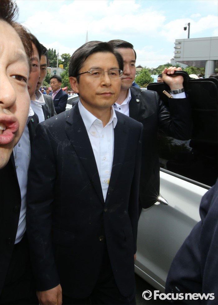(성주=포커스뉴스) 황교안 국무총리와 한민구 국방부장관이 15일 오전 경북 성주군청광장에서 사드(THAAD, 고고도미사일방어체계) 배치에 대한 주민설명회를 마치고 차량으로 이동하고 있다.