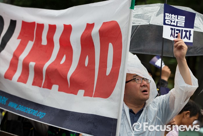 (서울=포커스뉴스) 16일 오후 서울 종로구 청계광장에서 사드한국배치반대전국대책회의 회원들이 사드 배치 결정 철회 평화행동을 하고 있다.
