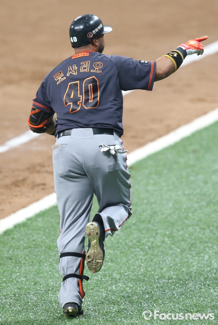 (서울=포커스뉴스) 16일 서울 고척 스카이돔에서 열린 2016 프로야구 올스타 경기에서 나눔팀 로사리오가 2회초 좌월 솔로 홈런을 치고 더그아웃을 향해 손짓을 하며 뛰어 나가고 있다.
