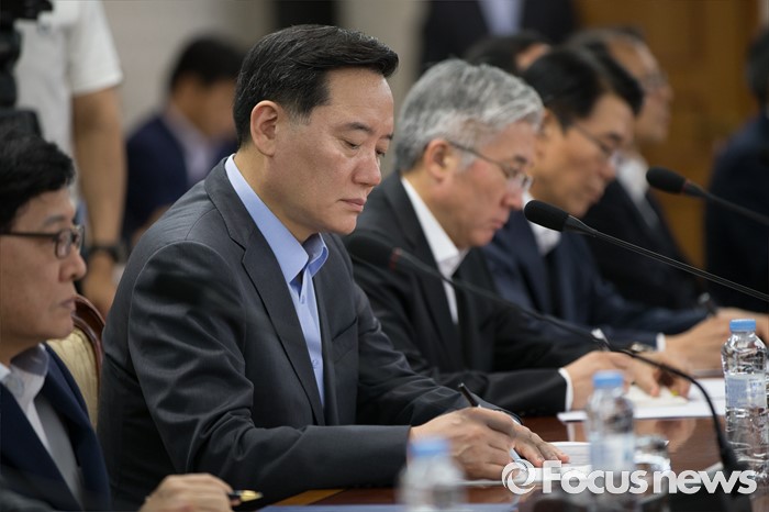 (서울=포커스뉴스) 17일 오후 서울 종로구 정부서울청사에서 열린 국민안전 관계장관회의에 김현웅 법무부 장관이 참석하고 있다.