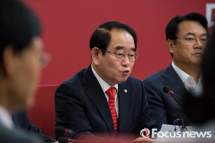 (서울=포커스뉴스) 박명재 새누리당 사무총장이 18일 오전 서울 여의도 새누리당사에서 열린 혁신비상대책위원회의에 참석 해 모두발언 하고 있다.