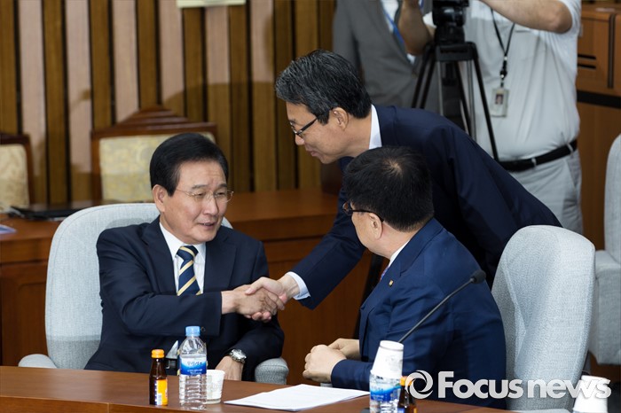 | △ 인사하는 3당 정책위의장 |