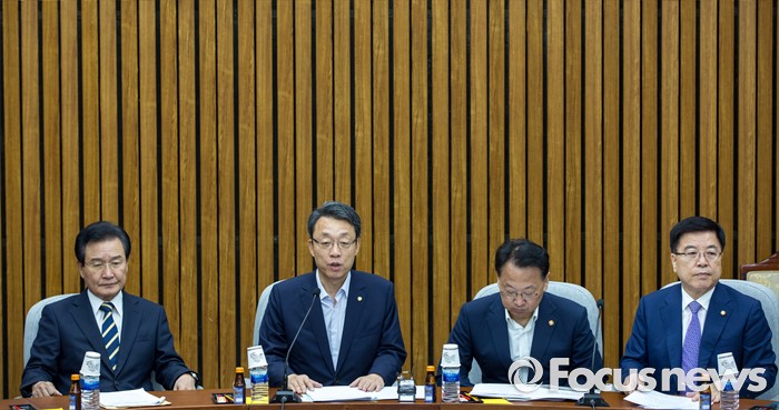 (서울=포커스뉴스) 김성식(왼쪽 두 번째) 국민의당 정책위의장이 18일 오전 서울 여의도 국회에서 열린 '3당 정책위의장-경제부총리, 3차 민생경제 현안점검회의'에 참석해 모두발언 하고 있다.
