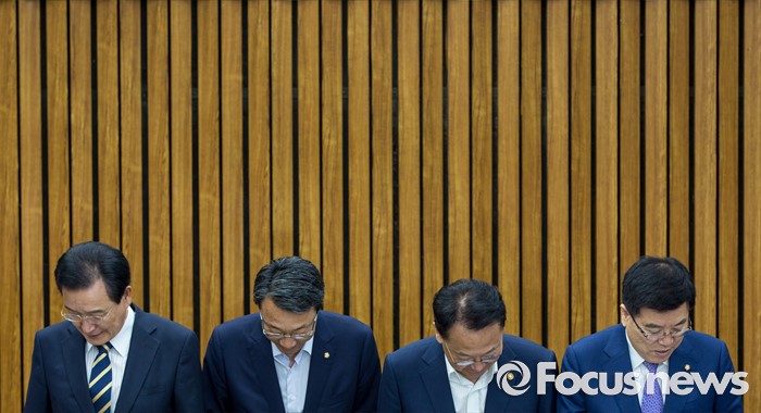(서울=포커스뉴스) 여야3당 정책위의장과 경제부총리가 18일 오전 서울 여의도 국회에서 열린 '3당 정책위의장-경제부총리, 3차 민생경제 현안점검회의'에 참석해 사진촬영을 마친 뒤 자리에 앉고 있다. 왼쪽부터 변재일 더불어민주당 정책위의장, 김성식 국민의당 정책위의장, 유일호 경제부총리 겸 기획재정부 장관, 김광림 새누리당 정책위의장.