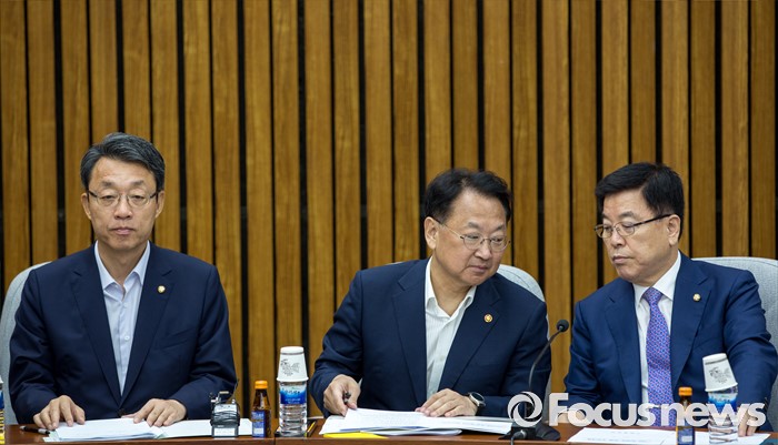 (서울=포커스뉴스) 김광림(오른쪽) 새누리당 정책위의장이 정책위의장과 유일호(가운데) 경제부총리 겸 기획재정부 장관이 18일 오전 서울 여의도 국회에서 열린 '3당 정책위의장-경제부총리, 3차 민생경제 현안점검회의'에 참석해 대화 하고 있다.