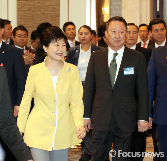 양국을 대표하는 기업인 300여명이 모인 가운데 박근혜 대통령은 양국 경제인들을 격려했다.