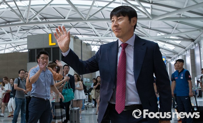 | △ 취재진 향해 인사하는 신태용 |