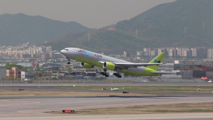 지니플레이는 기내에서 스마트폰, 태블릿, 노트북 등 고객의 개인 모바일 기기로 기내 무선인터넷망에 접속해 진에어가 제공하는 영화, TV 프로그램, 애니메이션, 음악, 게임 등의 컨텐츠를 스트리밍 방식으로 이용하는 유상 서비스다.진에어의 B777-200ER 항공기가 이륙하고 있다. <사진제공=진에어>