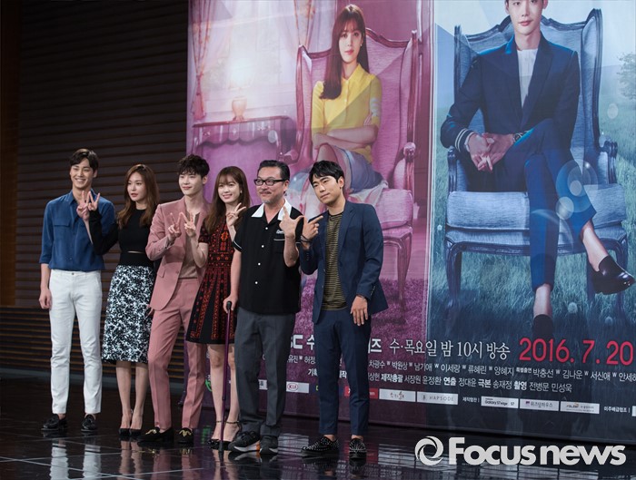 (서울=포커스뉴스) 18일 오후 서울 마포구 MBC 상암사옥에서 열린 MBC 수목미니시리즈 'W' 제작발표회에 참석한 배우 이태환(왼쪽부터) 정유진, 이종석, 한효주, 김의성, 이시언이 포토타임을 갖고 있다.