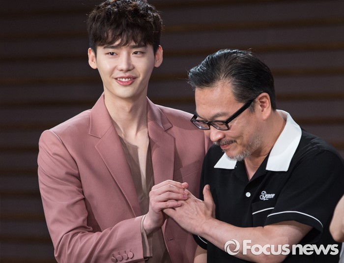 (서울=포커스뉴스) 18일 오후 서울 마포구 MBC 상암사옥에서 열린 MBC 수목미니시리즈 'W' 제작발표회에 참석한 배우 이종석(왼쪽)과 김의성이 포토타임을 갖고 있다.