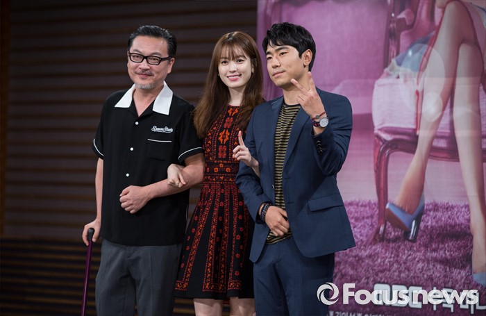 (서울=포커스뉴스) 18일 오후 서울 마포구 MBC 상암사옥에서 열린 MBC 수목미니시리즈 'W' 제작발표회에 참석한 배우 김의성(왼쪽부터), 한효주, 이시언이 포토타임을 갖고 있다.