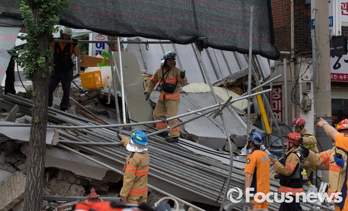 | △ 홍은동 건물 붕괴 사고, 구조작업 벌이는 소방대원들 |