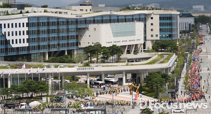 (세종=포커스뉴스) 전국건설기계연합회 구성원들이 18일 오후 세종시 정부세종청사 국토교통부 앞에서 굴삭기 수급조절을 통해 임대사업자를 보호할 것을 촉구하며 가두행진을 하고 있다.