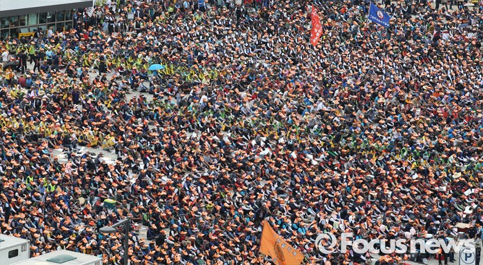 (세종=포커스뉴스) 전국건설기계연합회 구성원들이 18일 오후 세종시 정부세종청사 국토교통부 앞에서 굴삭기 수급조절을 통해 임대사업자를 보호할 것을 촉구하고 있다.