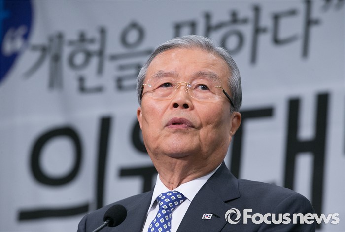 (서울=포커스뉴스) 18일 오후 서울 여의도 국회 헌정기념관에서 한국적 제3의 길 후원으로 열린 '개헌을 말하다 의원 대담, 어떤 헌법인가?'에 참석한 김종인 더불어민주당 비대위 대표가 축사를 하고 있다.