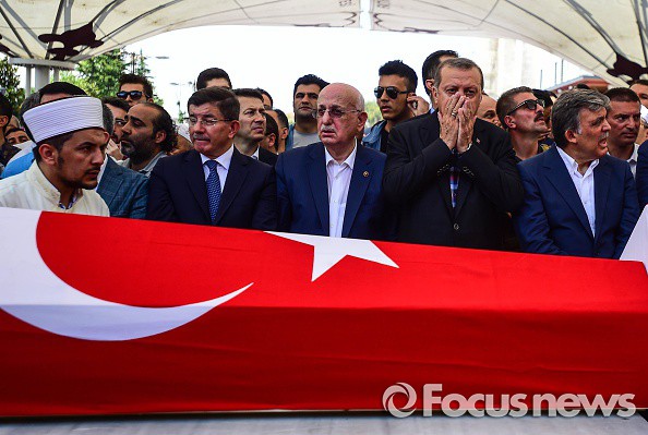 (서울=포커스뉴스) 레제프 타이이프 에르도안 터키 대통령이 군부 쿠데타로 희생된 이들의 장례식장에서 눈물을 쏟아내며, 반대 세력에 대한 '피의 숙청'을 선언했다.