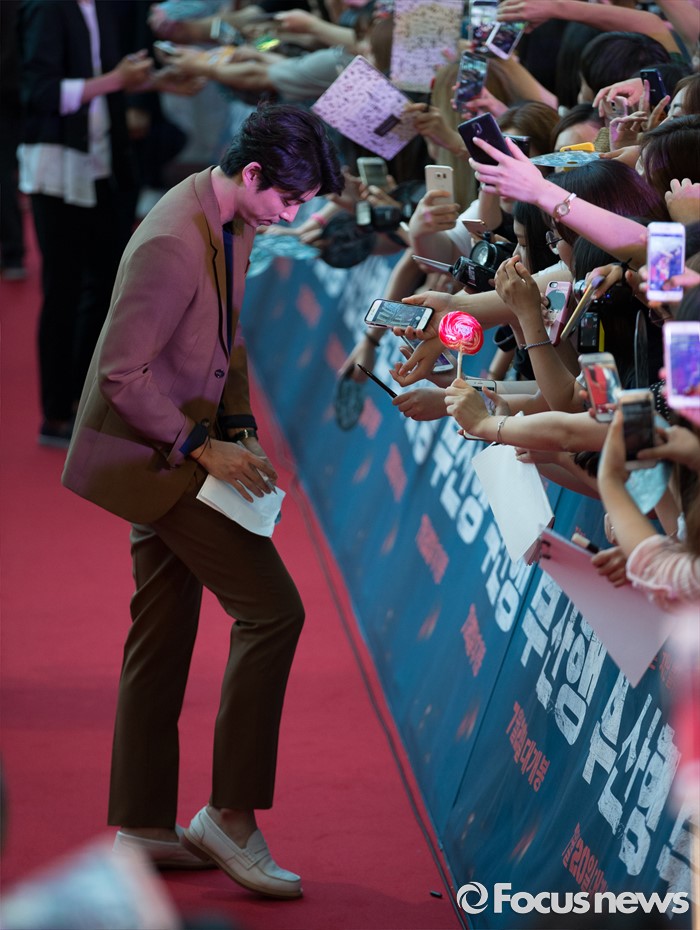 (서울=포커스뉴스) 18일 오후 서울 영등포구 타임스퀘어에서 열린 영화 '부산행' 레드카펫 행사에 참석한 배우 공유가 팬들에게 사인을 해주고 있다.
