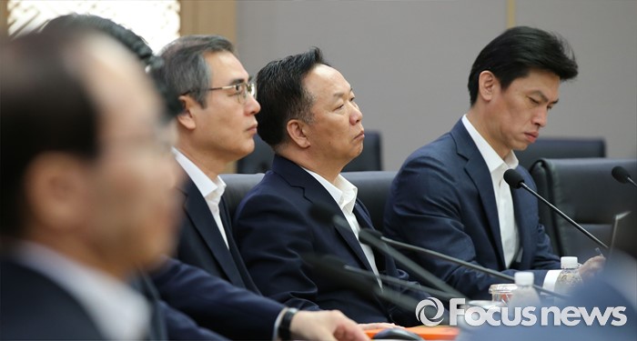 | △ 황 총리 모두발언 경청하는 국무위원 |