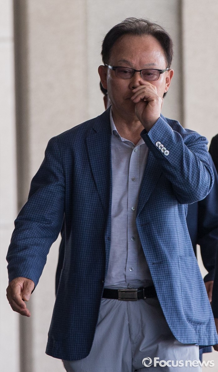 (서울=포커스뉴스) 롯데케미칼 270억원대 소송 사기에 연루된 혐의를 받는 기준 전 롯데물산 사장이 19일 오전 서울중앙지검에 피의자 신분으로 출석하고 있다.