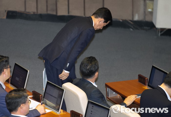 (서울=포커스뉴스) 19일 오전 서울 여의도 국회에서 열린 344회 국회(임시회) 1차 본회의, 사드(THAAD·고고도미사일방어체계) 배치에 대한 긴급현안질문에 참석한 한민구 국방부 장관이 단상으로 향하며 인사하고 있다.