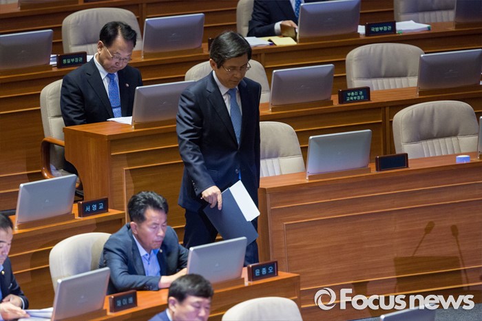 (서울=포커스뉴스) 황교안 국무총리가 19일 오전 서울 여의도 국회에서 열린 제344회 국회(임시회) 1차 본회의, 사드(THAAD, 고고도미사일방어체계) 배치에 대한 긴급현안질문에 참석해 의원 질의에 답하기 위해 연단으로 향하고 있다.