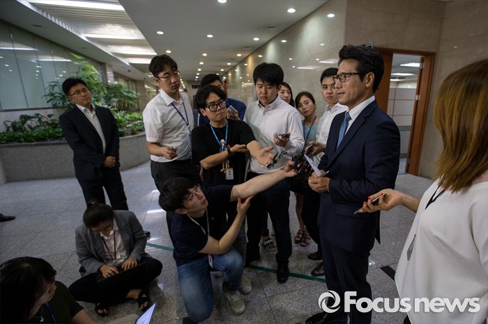(서울=포커스뉴스) 정병국 새누리당 의원이 19일 오전 서울 여의도 국회에서 윤상현 의원의 공천개입 의혹 관련 입장발표를 마친 뒤 취재진 질문에 답하고 있다.