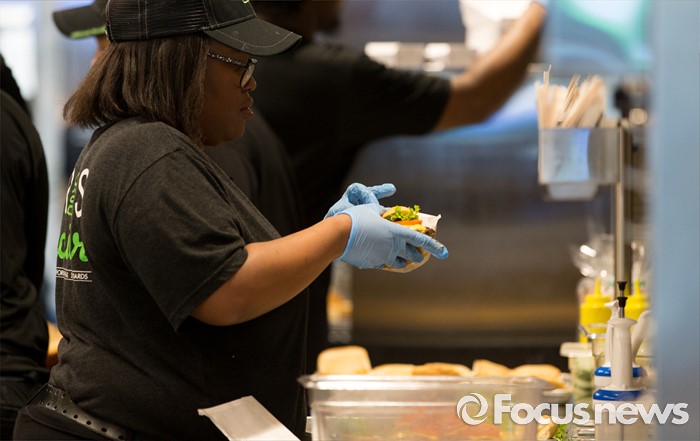 (서울=포커스뉴스) 19일 오전 서울 강남구 쉐이크쉑 강남점에서 열린 미디어 프리젠테이션 행사에서 직원들이 Shack-cago Dog를 포장하고 있다.