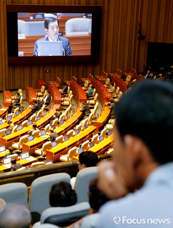 (서울=포커스뉴스) 19일 오후 서울 여의도 국회에서 열린 344회 국회(임시회) 1차 본회의, 사드(THAAD·고고도미사일방어체계) 배치에 대한 긴급현안질문에 참석한 성주군민 등 관계자들이 이완영 새누리당 의원이 한민구 국방부 장관에게 질문하고 있는 모습을 방청하고 있다.