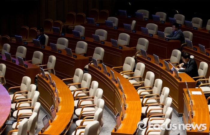 (서울=포커스뉴스) 19일 오후 서울 여의도 국회에서 열린 344회 국회(임시회) 1차 본회의, 사드(THAAD·고고도미사일방어체계) 배치에 대한 긴급현안질문에 불참한 의원들의 빈 자리가 보이고 있다.