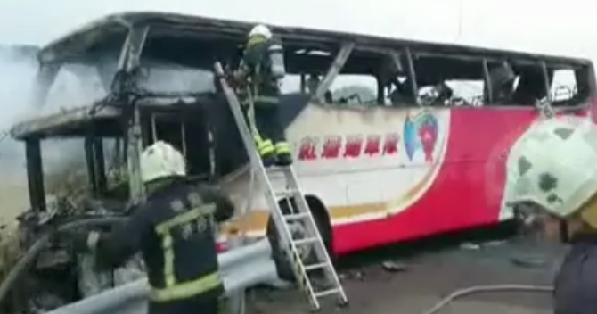 (서울=포커스뉴스) 대만에서 고속도로를 달리던 관광버스 화재 사고가 발생해 탑승자 전원이 사망했다.