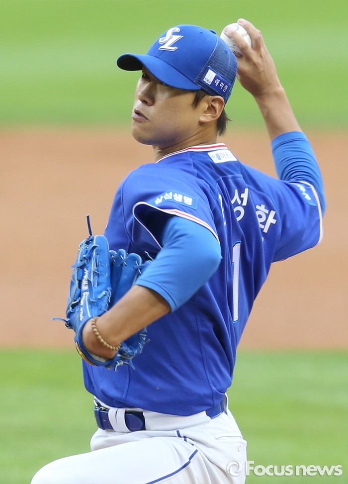 (서울=포커스뉴스) 19일 서울 잠실구장에서 열린 2016 프로야구 삼성-두산 경기에서 1회말 삼성 선발투수 윤성환이 투구하고 있다.