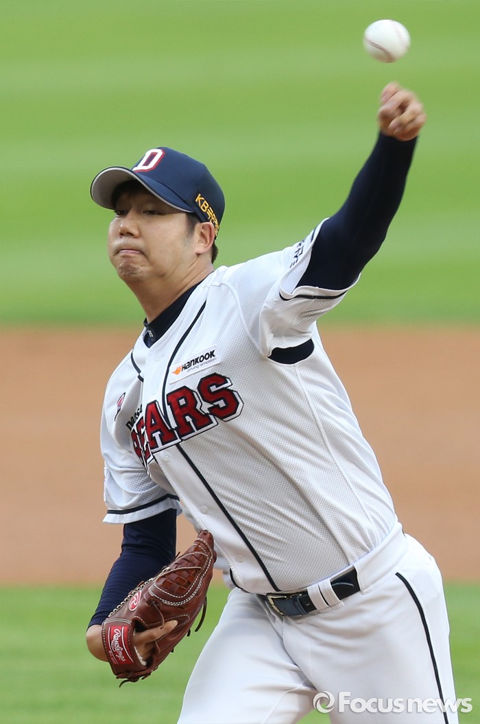 (서울=포커스뉴스) 19일 서울 잠실구장에서 열린 2016 프로야구 삼성-두산 경기에서 1회초 두산 선발투수 장원준이 투구하고 있다.