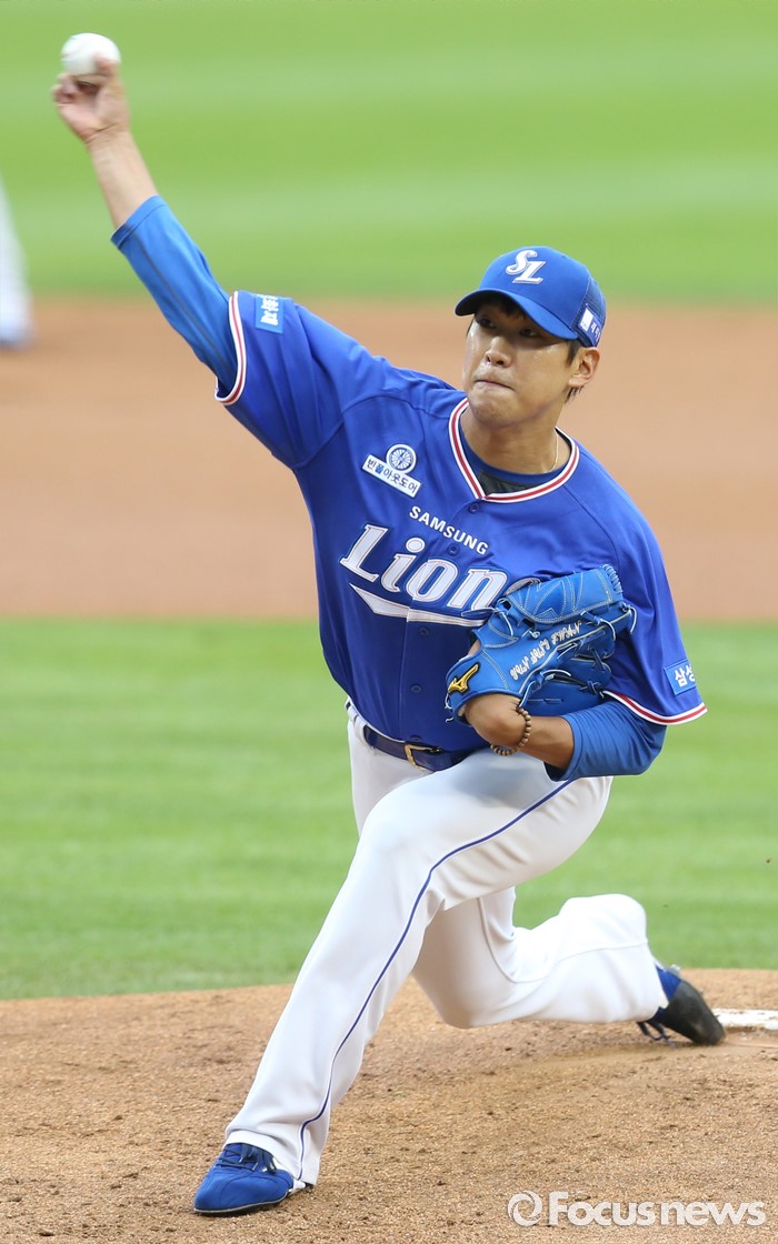 (서울=포커스뉴스) 19일 서울 잠실구장에서 열린 2016 프로야구 삼성-두산 경기에서 1회말 삼성 선발투수 윤성환이 투구하고 있다.