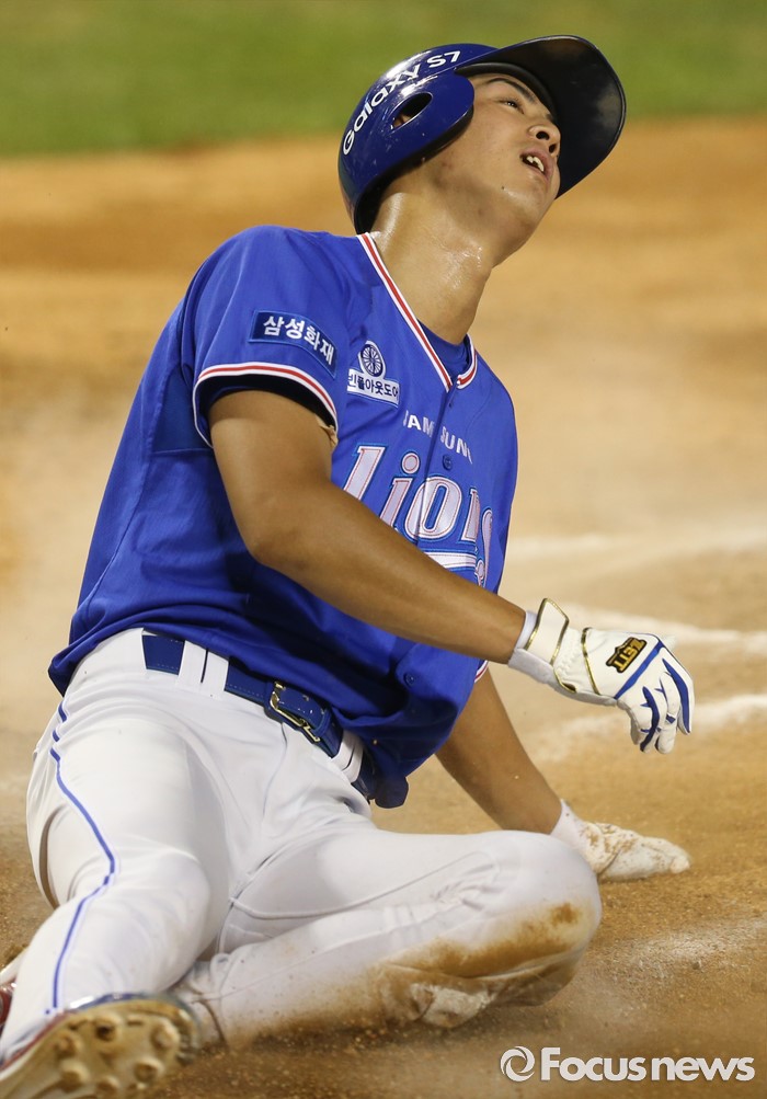 | △ 홈에서 아웃되고 허탈해 하는 삼성 구자욱 |