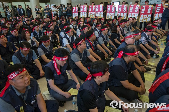 (서울=포커스뉴스) 20일 오전 서울 중구 은행회관에서 금융노조의 '성과연봉제 도입 관련 총파업 1차 결의대회' 가 열리고 있다.