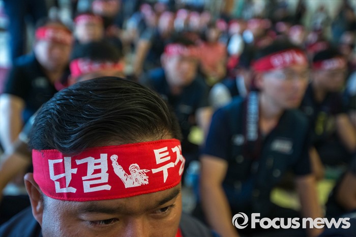(서울=포커스뉴스) 20일 오전 서울 중구 은행회관에서 금융노조의 '성과연봉제 도입 관련 총파업 1차 결의대회' 가 열리고 있다.