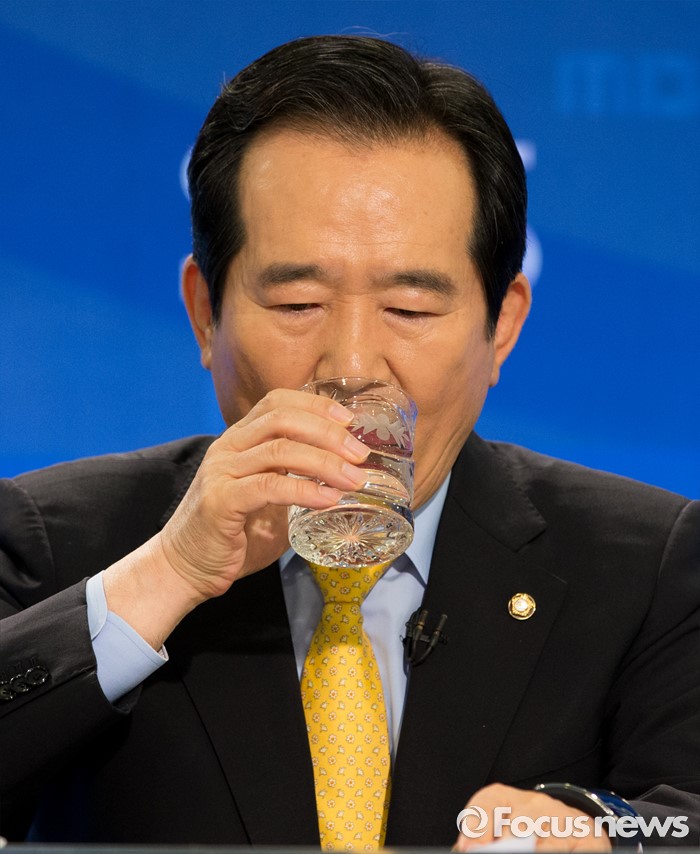 (서울=포커스뉴스) 정세균 국회의장이 20일 오전 서울 종로구 세종문화회관에서 열린 한국방송기자클럽 초청 토론회에 참석해 물을 마시고 있다.